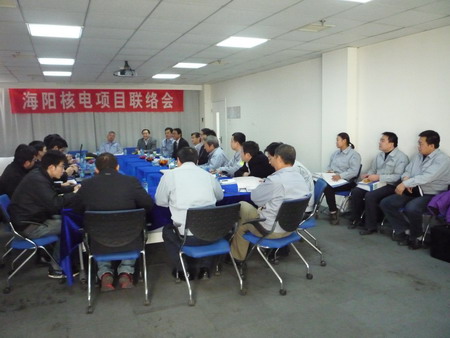 聯(lián)絡(luò)會主要是對我公司中標(biāo)海陽核電項目一期工程2*1000MW項目中的開閉試泵和循環(huán)水泵的有關(guān)文件進行確認,以及進度計劃等后續(xù)開始的建造工作進行商議。